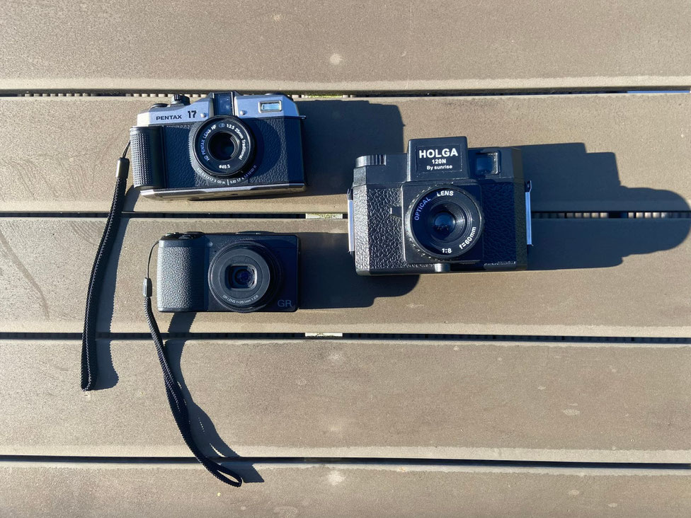 Meine geliebte Ricoh, meine Pentax 17 und meine Holga.