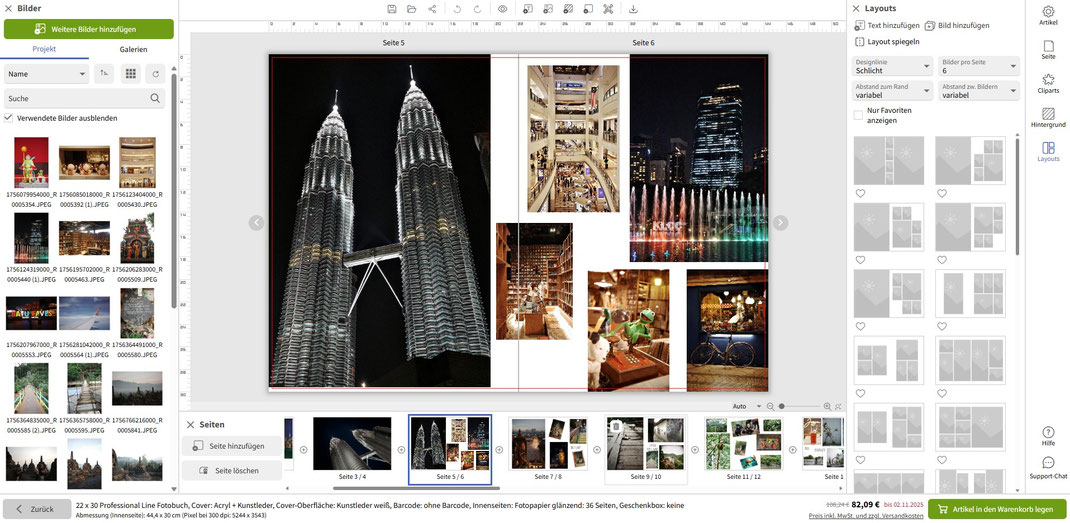 Nachdem das Fotobuch fertiggestellt war, landete es im Warenkorb. Dort konnte ich genau sehen, was es kosten würde, und schickte die Bestellung ab. Nur wenige Minuten später kam auch schon die Bestätigung per E-Mail.